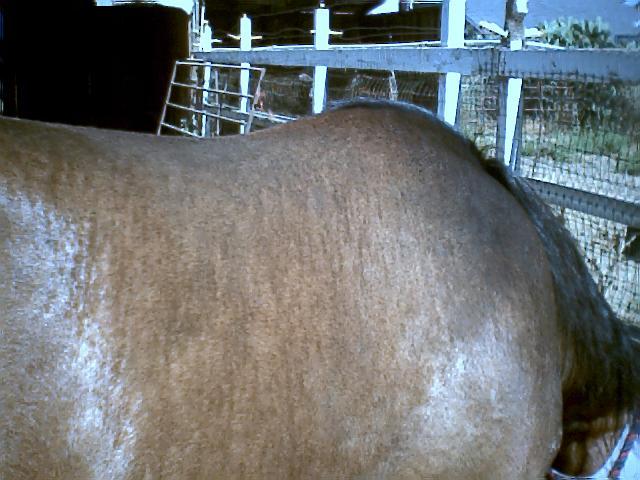 Shadow's One is registered with the Half Quarter Registry (12501 1/2). Like her sire, she should reproduce the seasonal brindle pattern approximately 50% of the time if bred to a non-brindle. If bred to a brindle, the percentages could be higher, with 75% anticipated, although I have had higher percentages from her sire from limited foal crops.