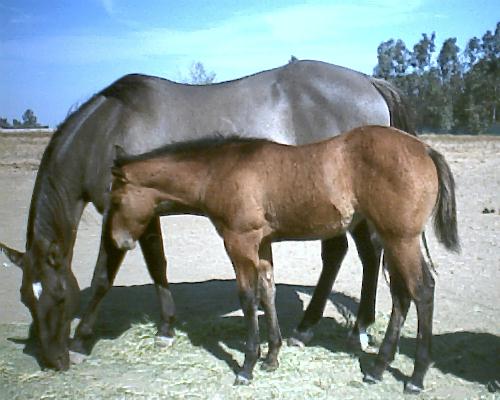 Brindle Batty Atty is registered with the AQHA (4393424). Like her sire, she should reproduce the seasonal brindle pattern approximately 50% of the time if bred to a non-brindle. If bred to a brindle, the percentages could be higher. The above is just in reference to the brindle pattern. For color in general, She can produce dun factor colors (grullo/dun). Even if bred to a non-colored stallion, I anticipate She should produce a minimum 75% color (dun or seasonal brindle).