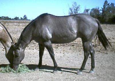 Candy is registered with the AQHA (3363744). Like her dam, she should reproduce the seasonal brindle pattern approximately 50% of the time if bred to a non-brindle. If bred to a brindle, the percentages could be higher. The above is just in reference to the brindle pattern. For color in general, Candy can produce dun factor colors (grullo/dun) and since her dam was a buckskin, she may also carry the Ccr dilution to produce buckskins. Even if bred to a non-colored stallion, I anticipate Candy should produce a minimum 75% color (dun, buckskin, or seasonal brindle).
