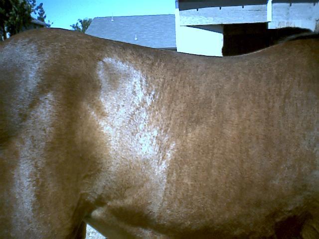 Shadow's One is registered with the Half Quarter Registry (12501 1/2). Like her sire, she should reproduce the seasonal brindle pattern approximately 50% of the time if bred to a non-brindle. If bred to a brindle, the percentages could be higher, with 75% anticipated, although I have had higher percentages from her sire from limited foal crops.